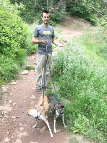 PHOTO: That is Erik holding little Coco who ran up the trail to find him.