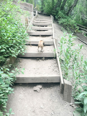 This trail is not for the weak of heart, but the beginning is so beautiful, that everyone should at least hike up an hour or so. You will need to park on the main canyon road because all of the parking spots are for picnics and there are only a handful up top by the trailhead. Plus it’s a super tight squeeze and pretty steep hill to drive. You don’t want to deal with having to pass other cars. Just stay on the road. Plus you’ll love the little trek up through the lot as it is surrounded with mini waterfalls, dogs and families.